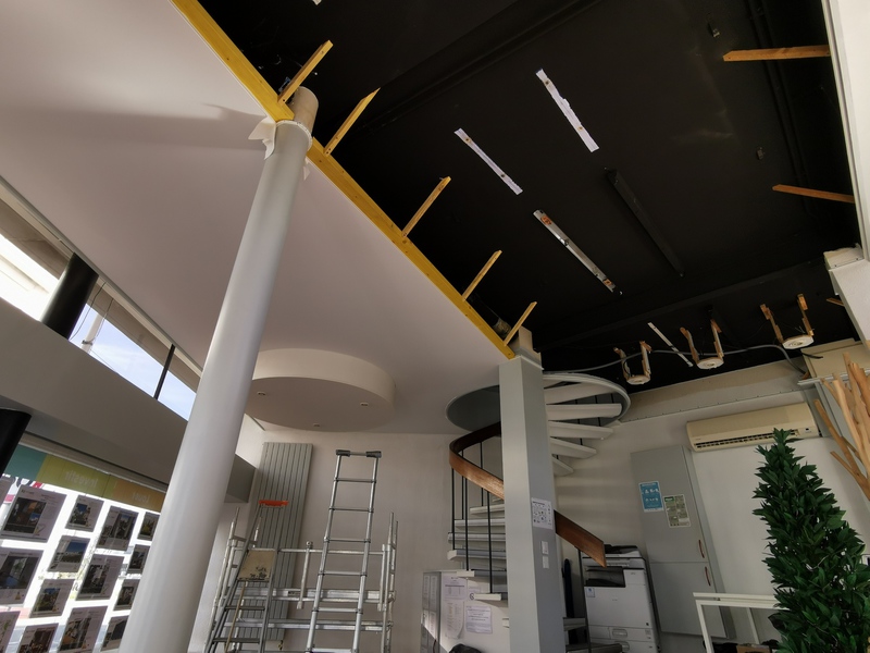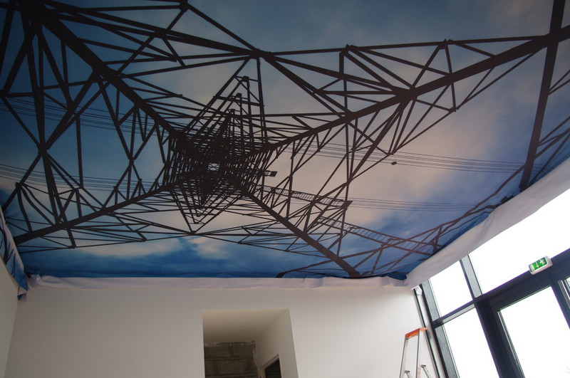PLAFOND TENDU AVEC MOTIF IMPRIME PILONE ELECTRIQUE